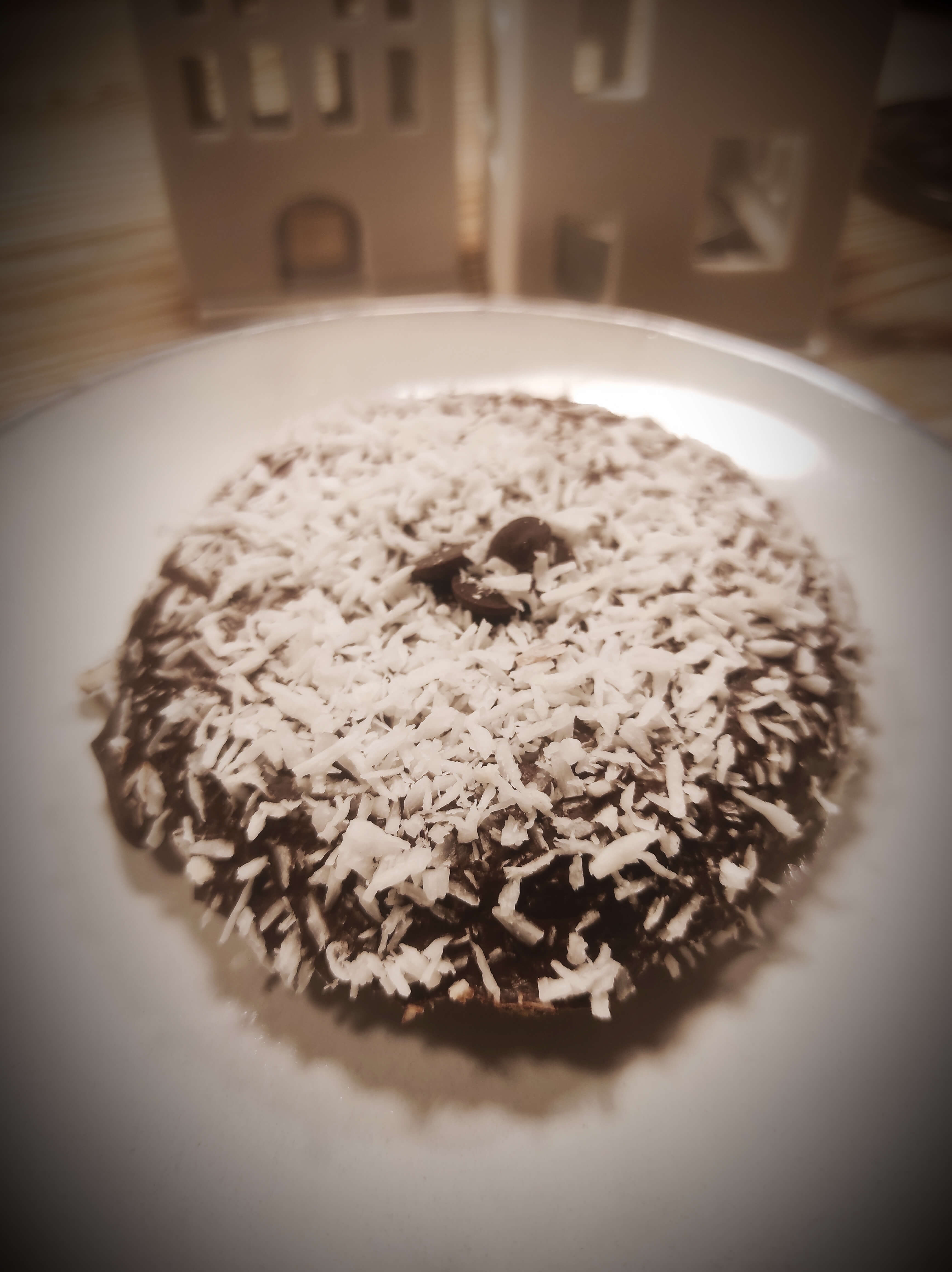 Mit Zartbitterschokolade glasiert und Kokosstreuseln. Nicht zu verwechseln mit Kokoslebkuchen mit Schokofüllung!