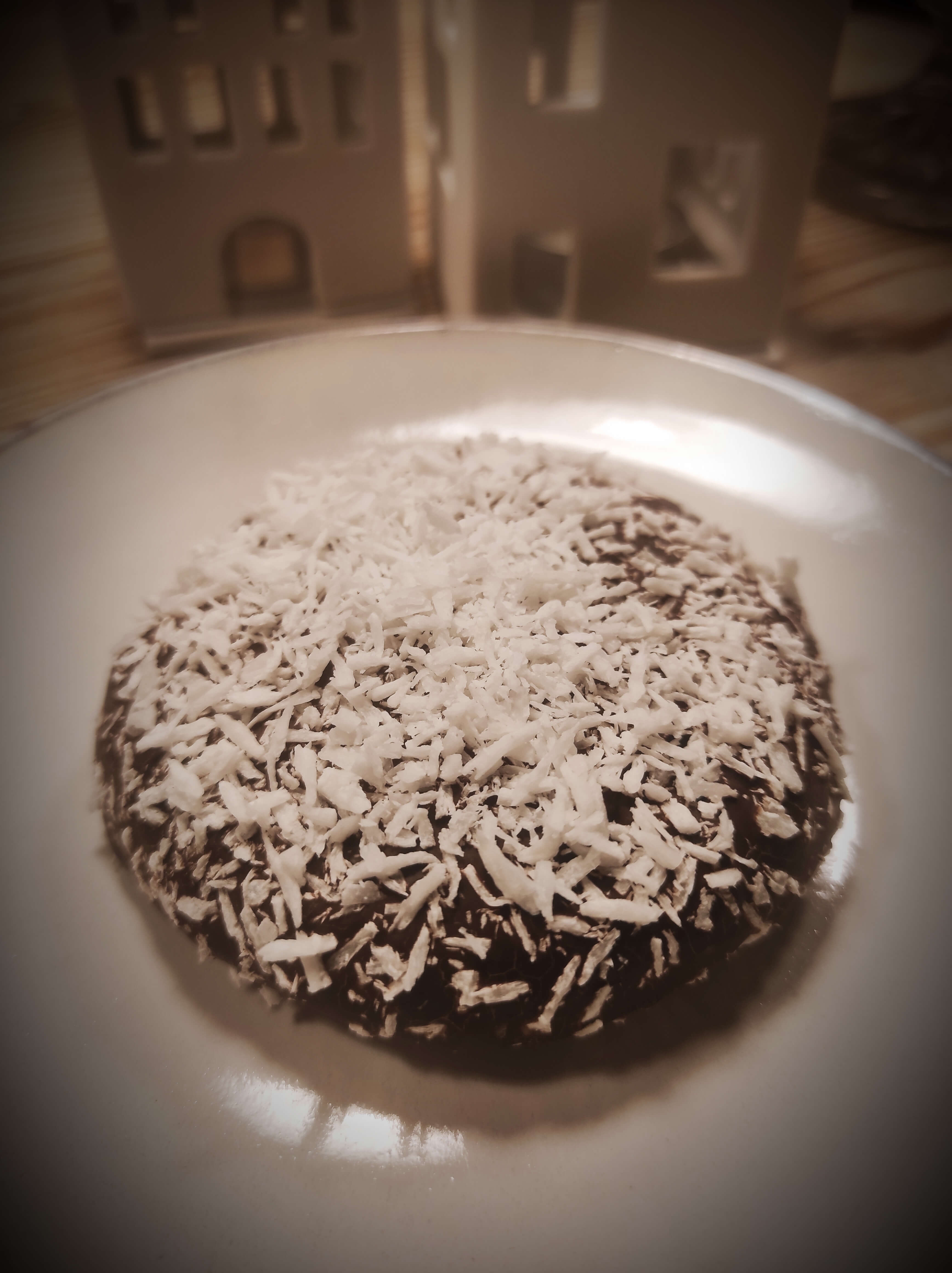 Mit Zartbitterschokolade glasiert und Kokosstreuseln. Nicht zu verwechseln mit Kokoslebkuchen mit Schokofüllung!